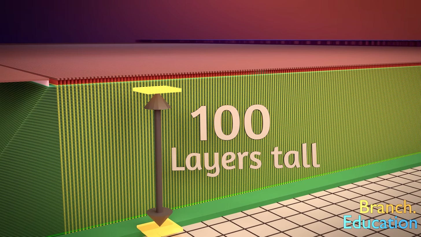 Each generation, manufacturers shrink transistors laterally, from 1-alpha to 1-beta to 1-gamma node designations. You’re packing more bits into the same wafer area by making features smaller.
